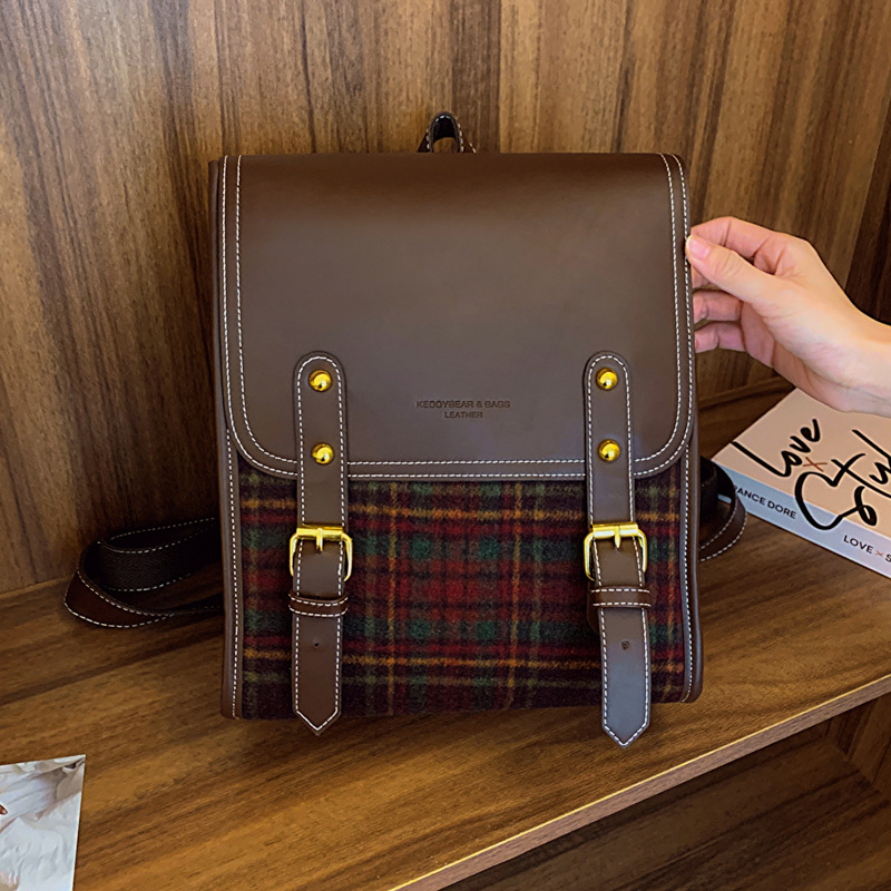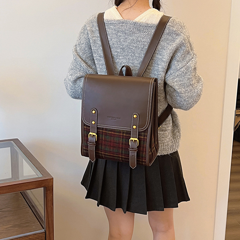 Woolen Plaid Backpack